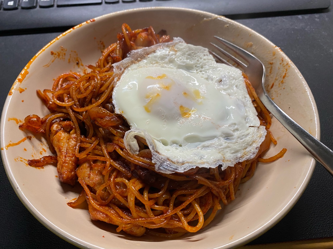 最後に投入するパスタにいい感じに焼きが入って、まさに焼きナポリタン!なのよ。