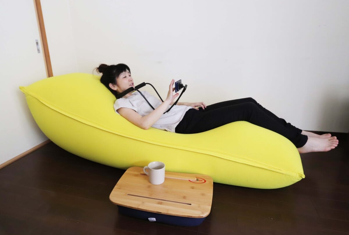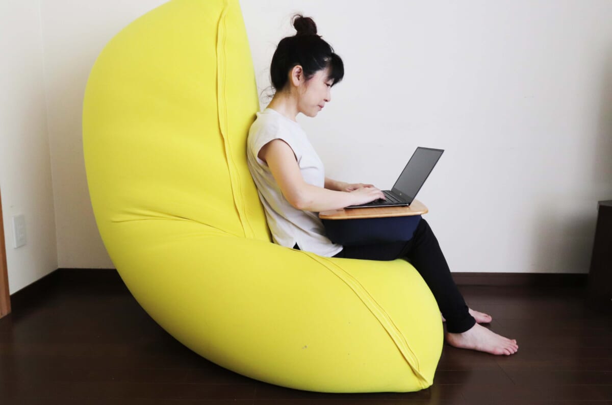 そこで見つけたのがアメリカ発の、体にフィットする魔法のソファ「Yogibo(ヨギボー)」。2014年に日本初上陸し、現在全国に約70店舗も展開する大人気のブランドですが、「快適すぎて動けなくなる魔法のソファ」なんていわれているソファで仕事したら、快適すぎて仕事しなくなっちゃうんじゃ? と疑心暗鬼。