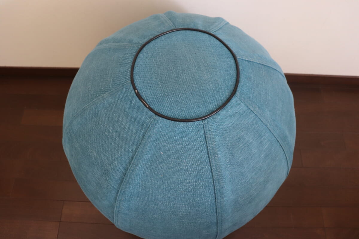 普通のバランスボールとの最大の違いは布カバーがついていること。ビニールのバランスボールはショートパンツで乗ると肌にくっついて気持ち悪かったり、床にべたっと張り付いてしまってバリバリっとした不快な音がしたりすることもありますが、布カバーは座り心地、触り心地抜群。もちろん洗濯も可能。さらに下部にストッパーがついているためゆらゆらバランスがちょうどいいんです。