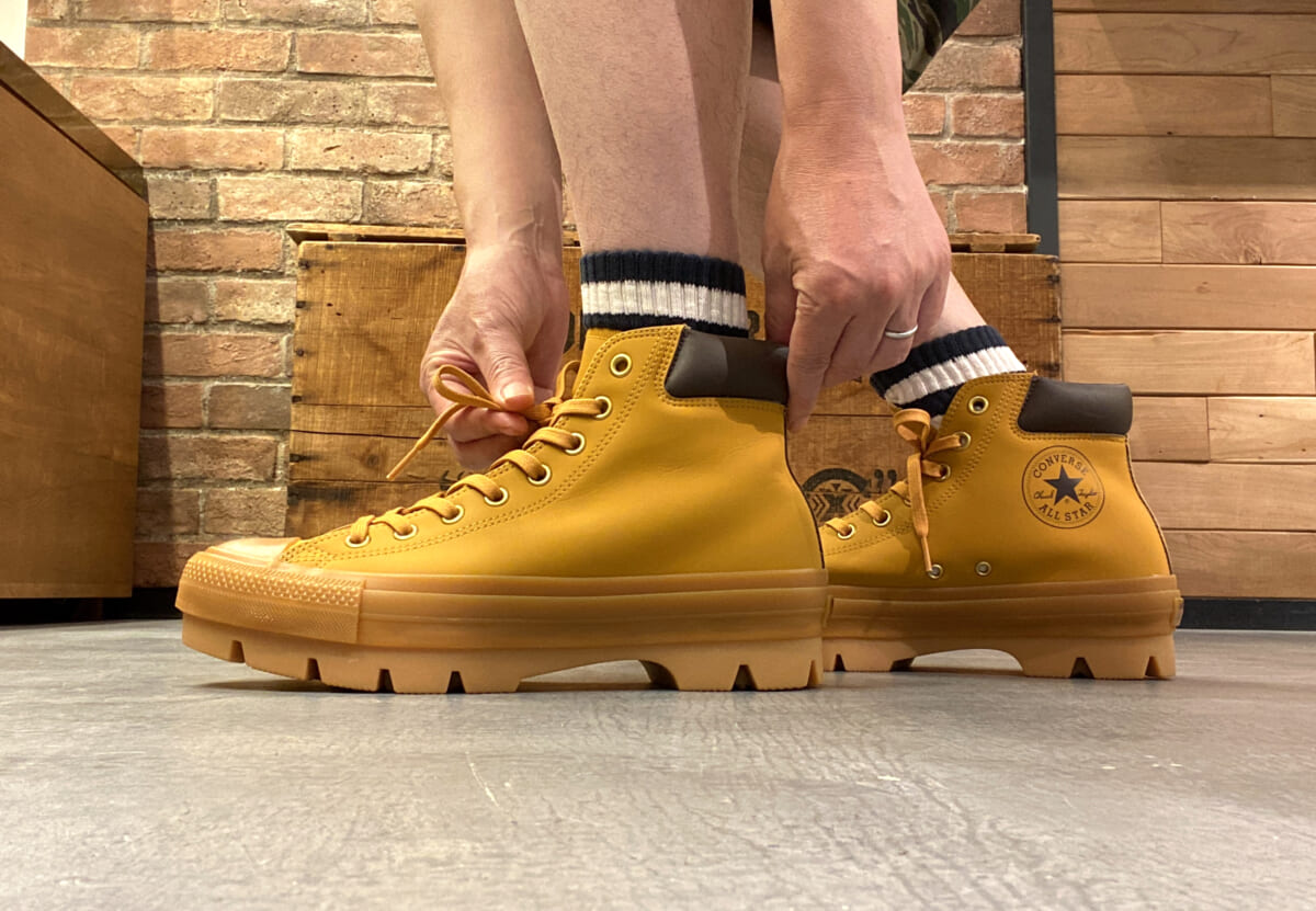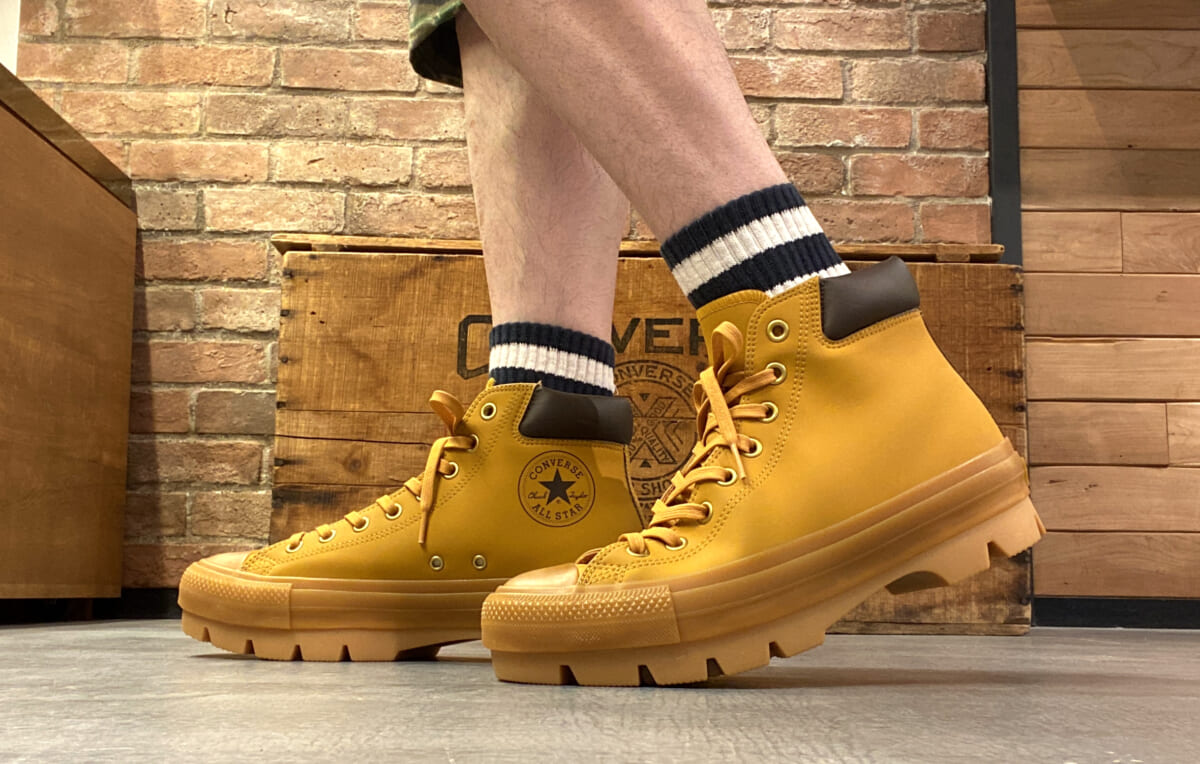 オールスターとは思えないゴツさが斬新ですね。オールスターには様々なアレンジバージョンが存在しますが、ここまでガッツリとイメージを一新させるとは驚きです! しかもブーツライクに履けるので、秋冬のヘビーデューティーコーデにも活躍してくれますね!