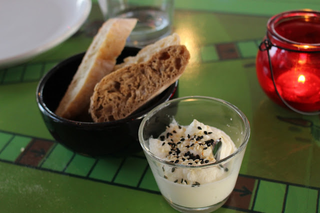 I was lucky enough to get a table despite not having a reservation and got some complimentary bread with a ricotta cheese dip.