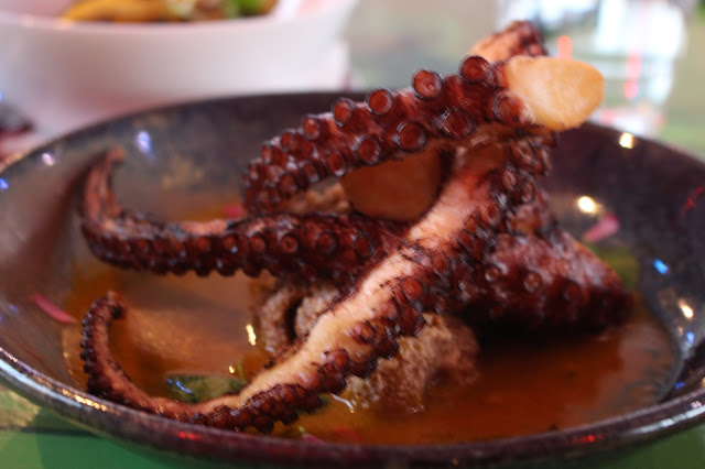I returned to my lovely grilled and slightly fried octopus on a bed of pureed sweet potatoes and other tasty things.