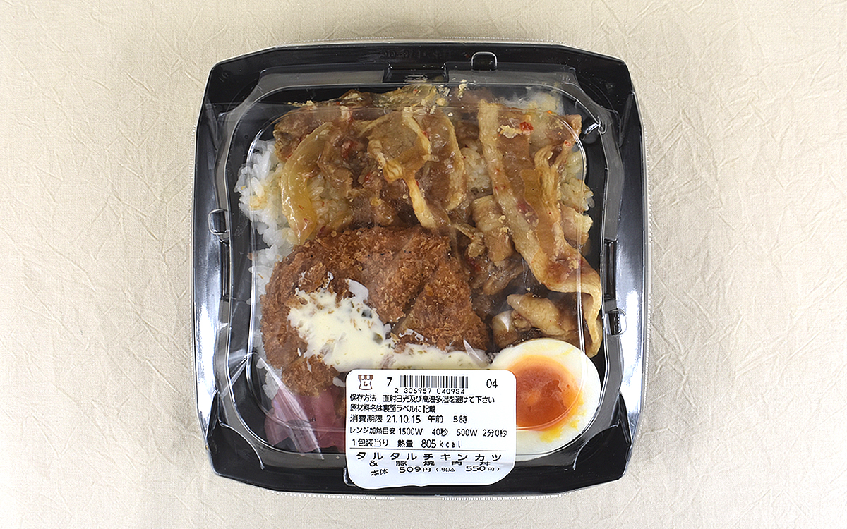 食欲の秋を迎えて、肉料理をがっつりと楽しみたくなった私。たとえば自宅で焼肉などを楽しむのも1つの方法ですが、手間なくサっと食べられるコンビニ各社の魅力的な肉系弁当にもそそられます。そこで今回は、10月12日より販売がスタートしたローソンの「タルタルチキンカツ&豚焼肉丼」(550円/税込)をセレクト。チキンと豚肉の組み合わせは、どのような味わいをもたらしてくれるのでしょうか?