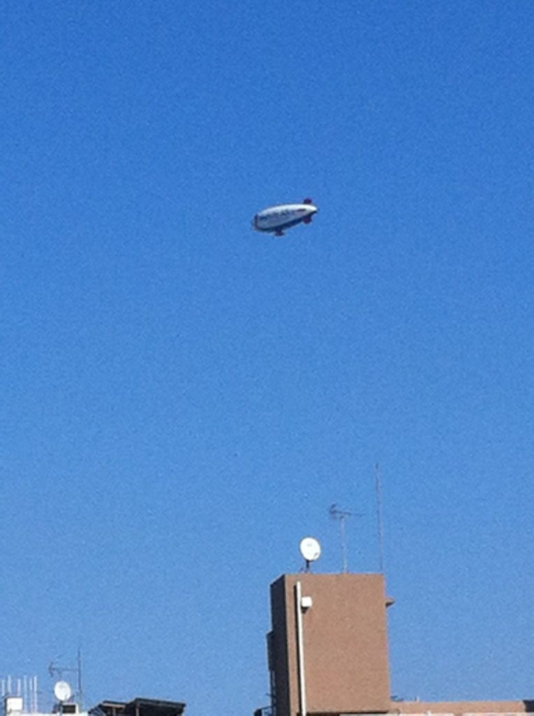 今日は、前からお約束をしていたエイデン&アネイでお世話になっている Mさんと近くのレストランの屋上でランチをしました。 仕事の話からガールズトークまで夢中でおしゃべりしていましたが、 ふと空を見あげると飛行船が通過・・・