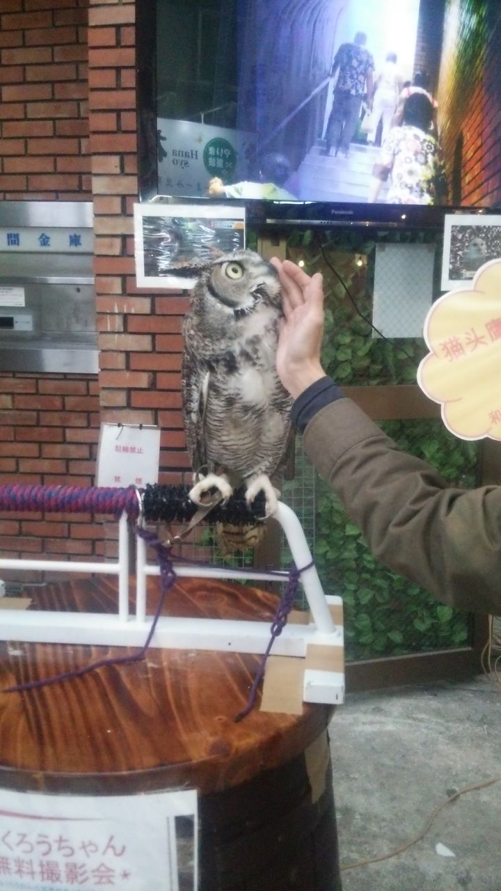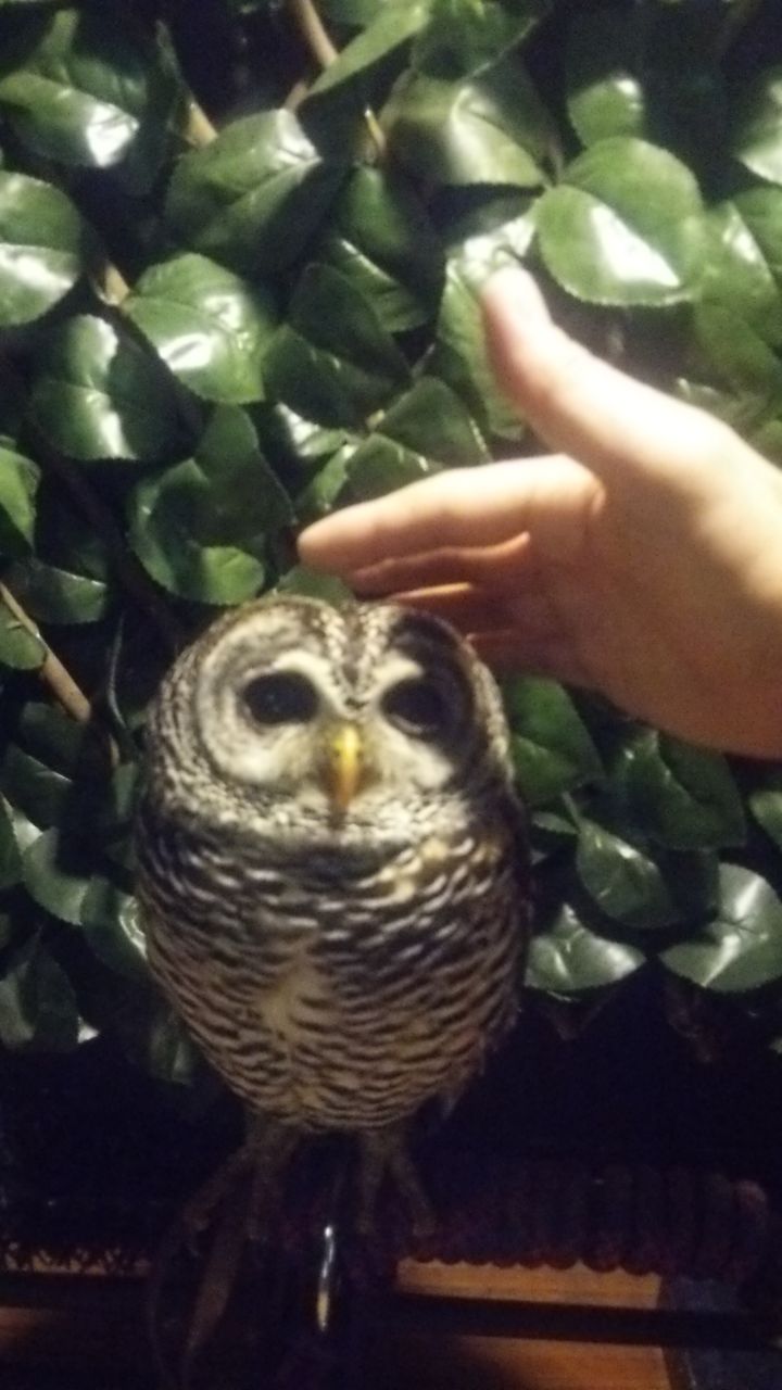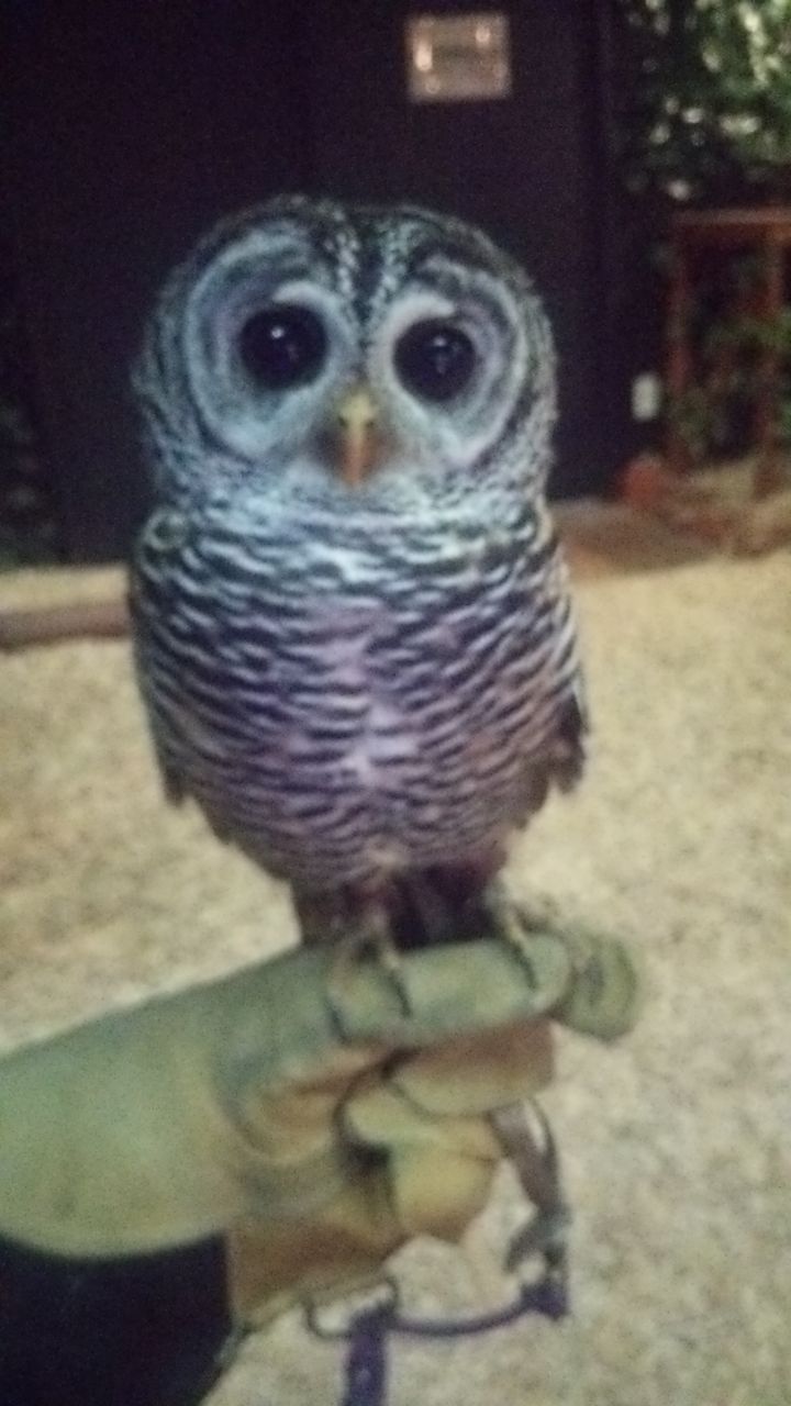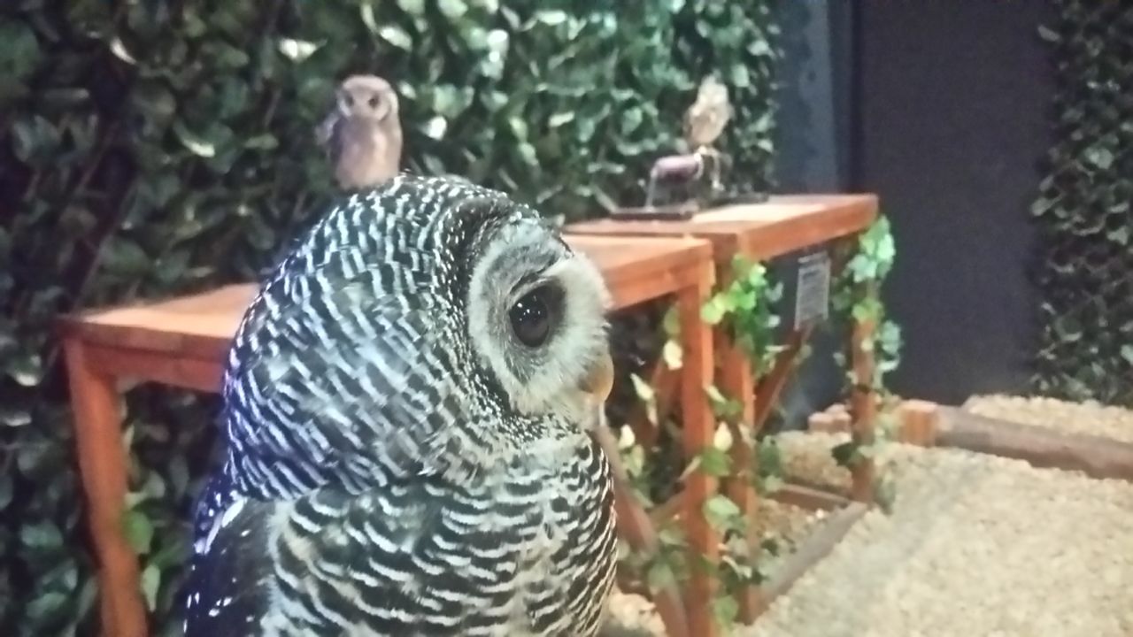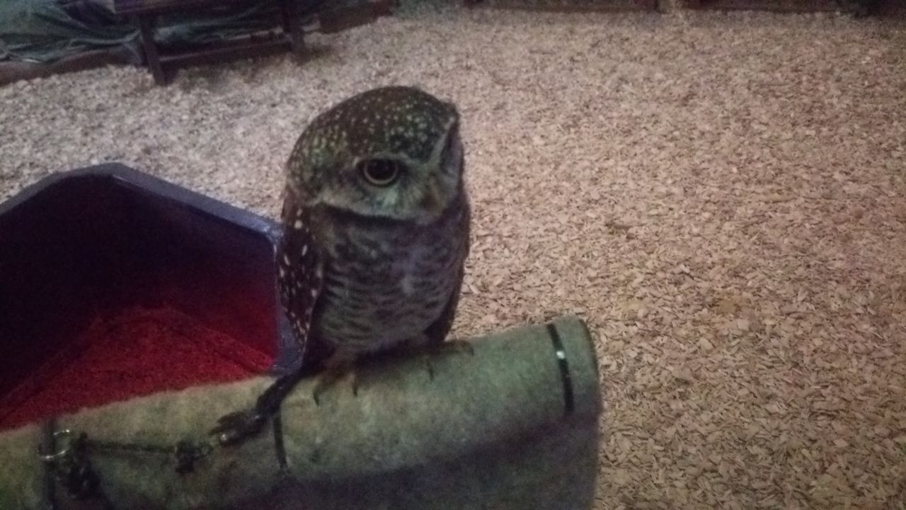 マリモとか言うニックネームでオスだかメスだかDNA鑑定しないと解らないらしいフクロウ。最初見たとき置物かと思うくらいジっとしてた。