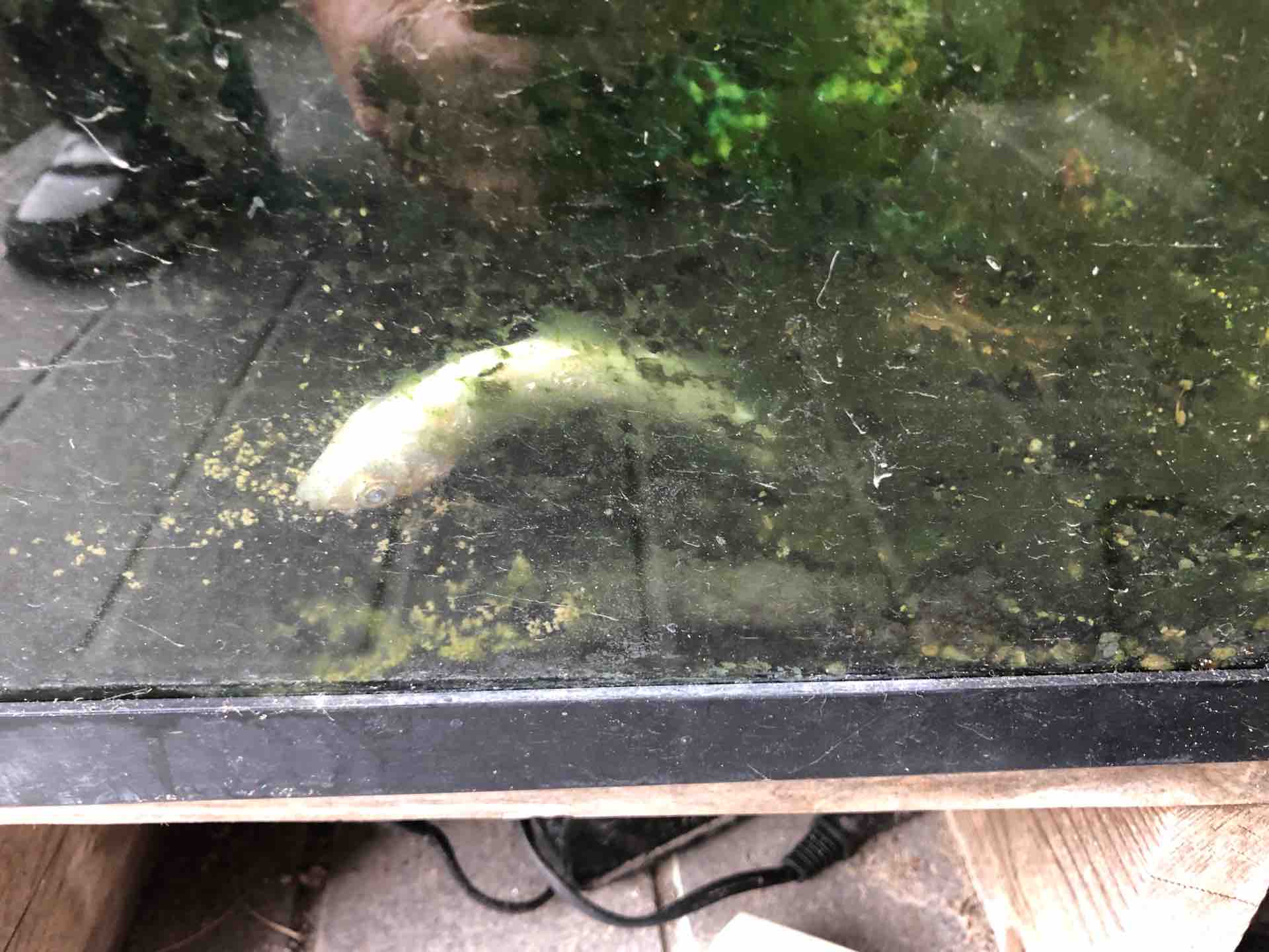 今朝は、動いている様に見えたが、餌に寄って来て食べていない。勿論、他のモロコの様に上に寄ってくるので無く、下に落ちた落ち餌拾いをしていない。亡くなったのだ。