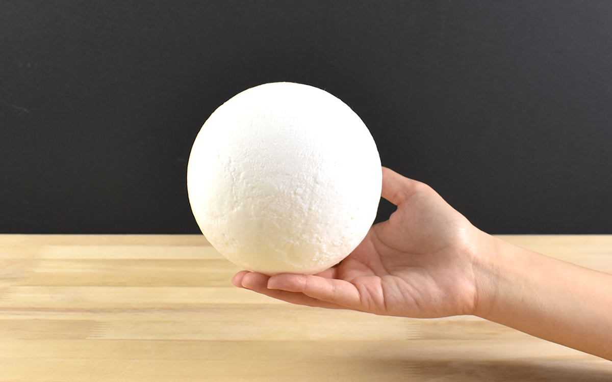 球体表面にごく小さなタッチスイッチがあり、1度触れたところご覧のとおりふわっと昼白色に。この時点で美しい満月の雰囲気を存分に楽しめますが、もう1度触れると鮮やかな電球色にバトンタッチ。本物の満月がすぐ目の前に浮かんでいるように感じるほどリアルで、3Dプリント技術の高さにすっかり驚かされてしまいました。
