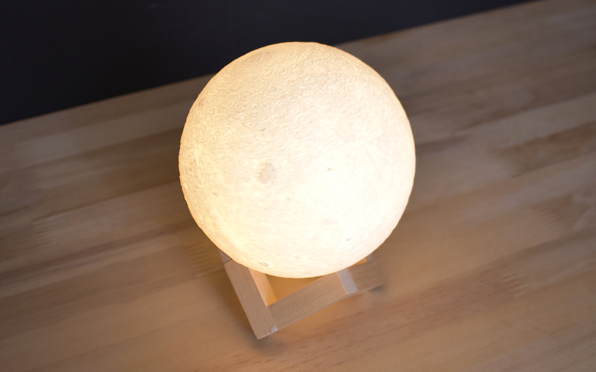 寝室の模様替えをおこなうタイミングで、室内灯とは別に間接照明を導入しようと思い立った私。小さな電気スタンドで十分とはいえ、せっかくならインテリアとしても映えるアイテムを選びたいのが本音です。そんな折り、友人からオススメされたのが「3Dプリント月球ランプ」(2199円/税込)という商品。美しいビジュアルに一目惚れして、さっそく購入してみました。