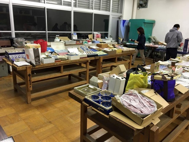 翌日の中学校文化祭のPTAバザーの商品陳列・値札貼り。