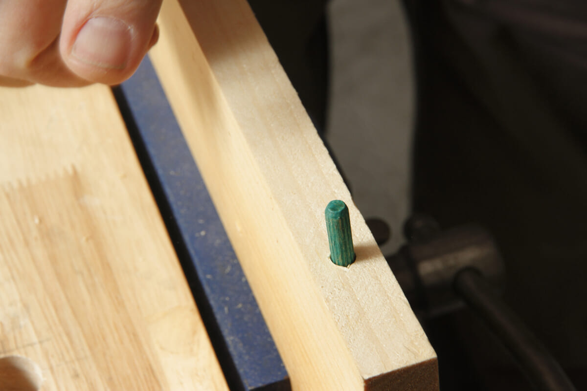 板はぎなどに活用されるダボ接ぎのダボ穴は、はぎ合わせる板の双方に正確なダボ穴をあけなければならない。ドウェルマスターは対面するダボ穴の位置を正確に合わせてあけることができるジグ。付属のガイドピンや本体のフェンス、センターファインダーを組み合わせて、相対する板に正確なダボ穴をあけることができる仕組みになっている。
