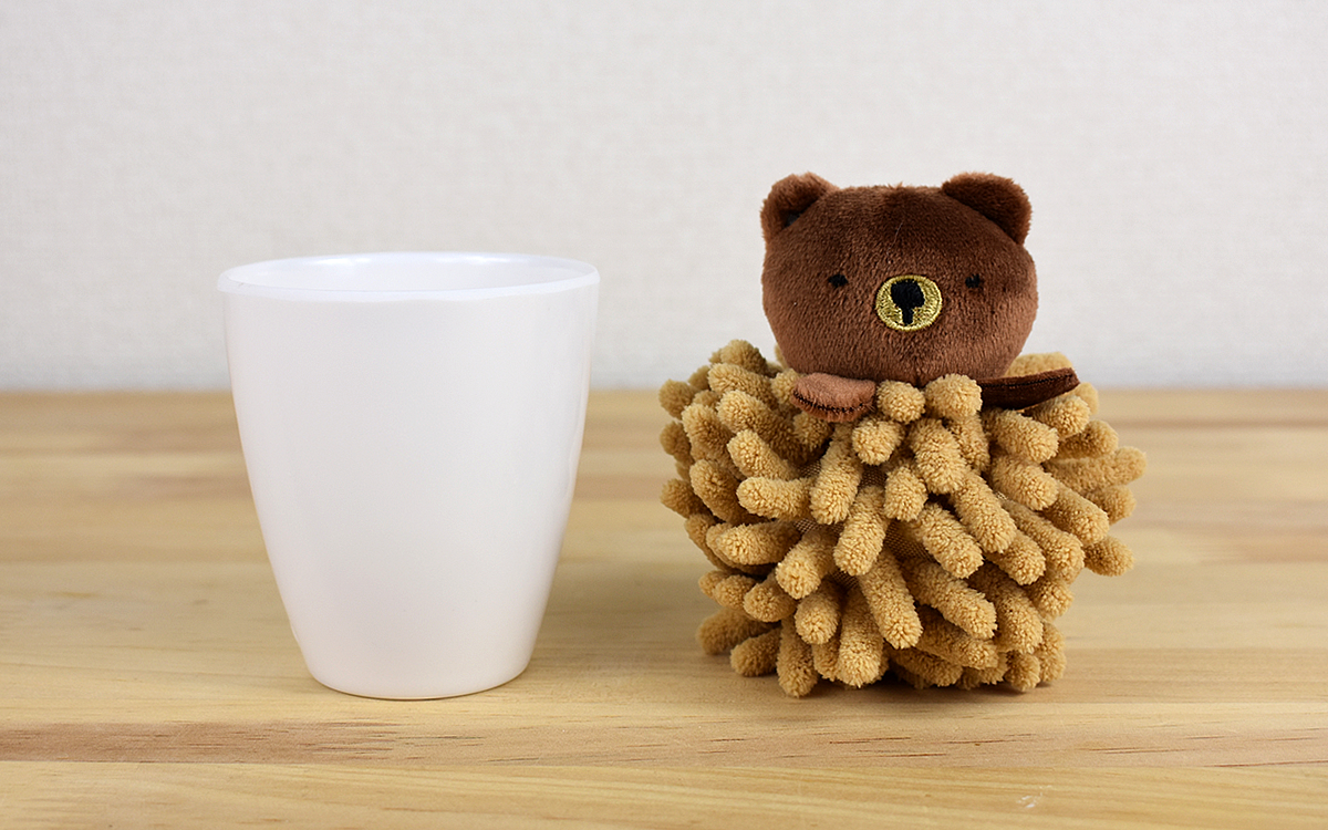 同商品はカップとクリーナーがセットになっていて、「ブラウンベア」の名前のとおりクリーナーの上部にはクマのマスコットが。どこかキョトンとした表情に癒され、心にゆとりをもたらしてくれます。ちなみにカップは手のひらに乗るほどコンパクトなサイズ。デスクの片隅に置いていても、掃除グッズには見えないのではないでしょうか。