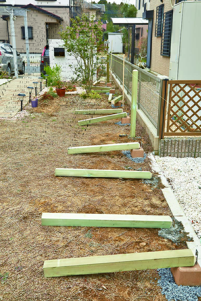 リビングから庭を眺めたとき、目の前のフェンスがメッシュパネルのものだったり、ゲートがアルミ製のものだと無機質な印象を受ける。そこで庭の植栽に似合うような木製フェンス&ゲートを作ることにした。