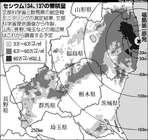 え、群馬県まで続いていた。文科省によると、放射性物質を含んだ雲が山地に沿って風に運ばれ、樹木や雨によって地上に沈着したと推測できるという。