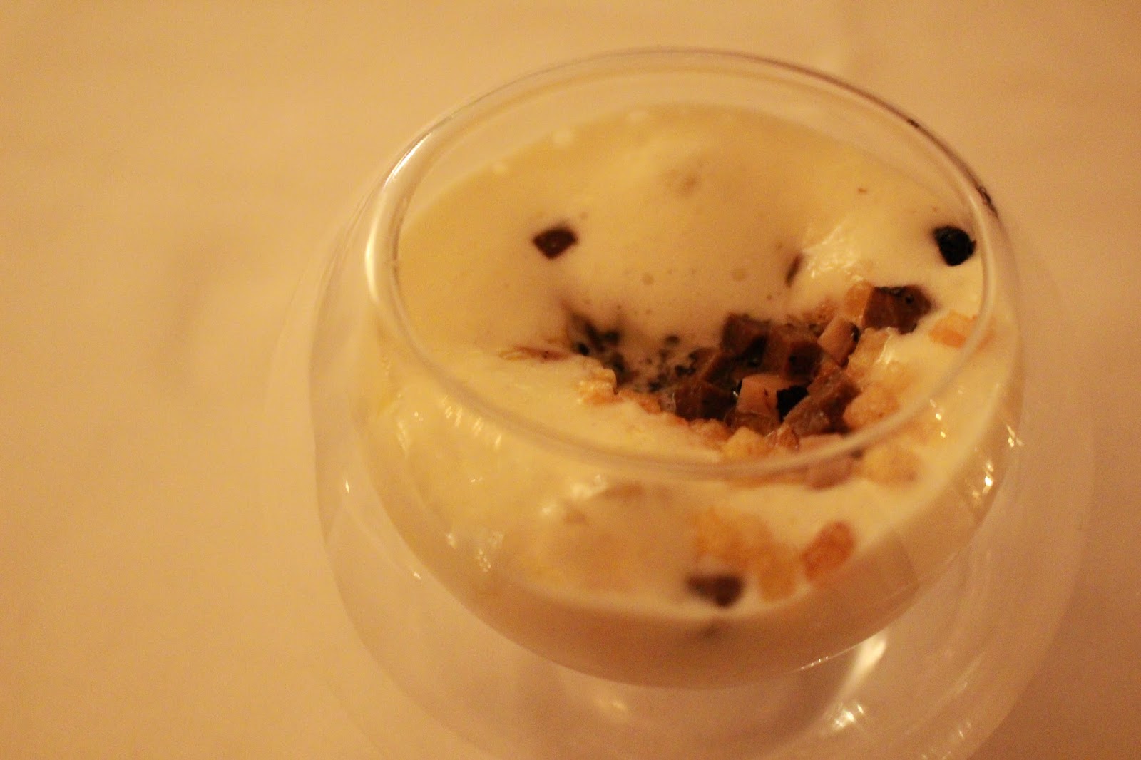 Course 5: Airy foam of potato with crispy potato bits, grated summer truffle and mushroom tea (which was poured into it later) – this was absolutely divine