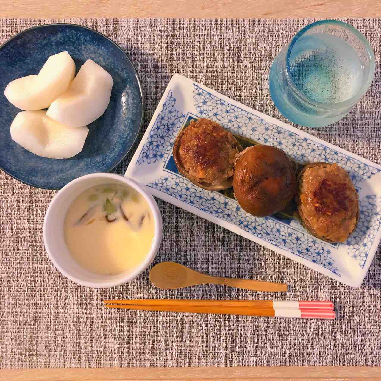 椎茸の肉詰めと枝豆茶碗蒸し(市販の)
