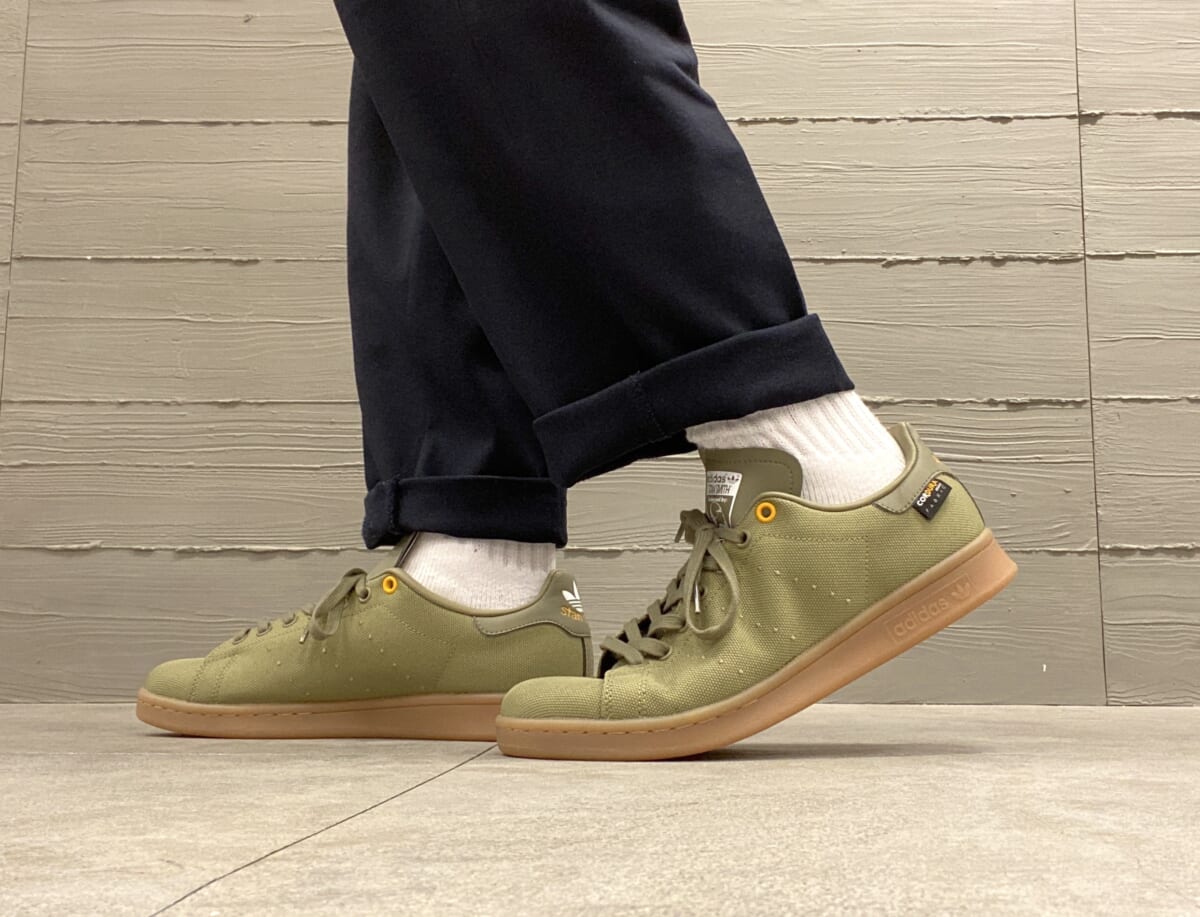 本作は、スタンスミスならではのシンプルなフォルム&ディテールはそのままに、耐久性に優れたCORDURA(R)素材やリサイクル素材を生地に使用してアップデート。プラスチック廃棄物ゼロを目指すアディダスの取り組みのひとつとして、地球の環境と未来を考慮して作られています。 そして男心を刺激する、ミリタリーライクなカラーリング(オービットグリーン)も魅力的です。