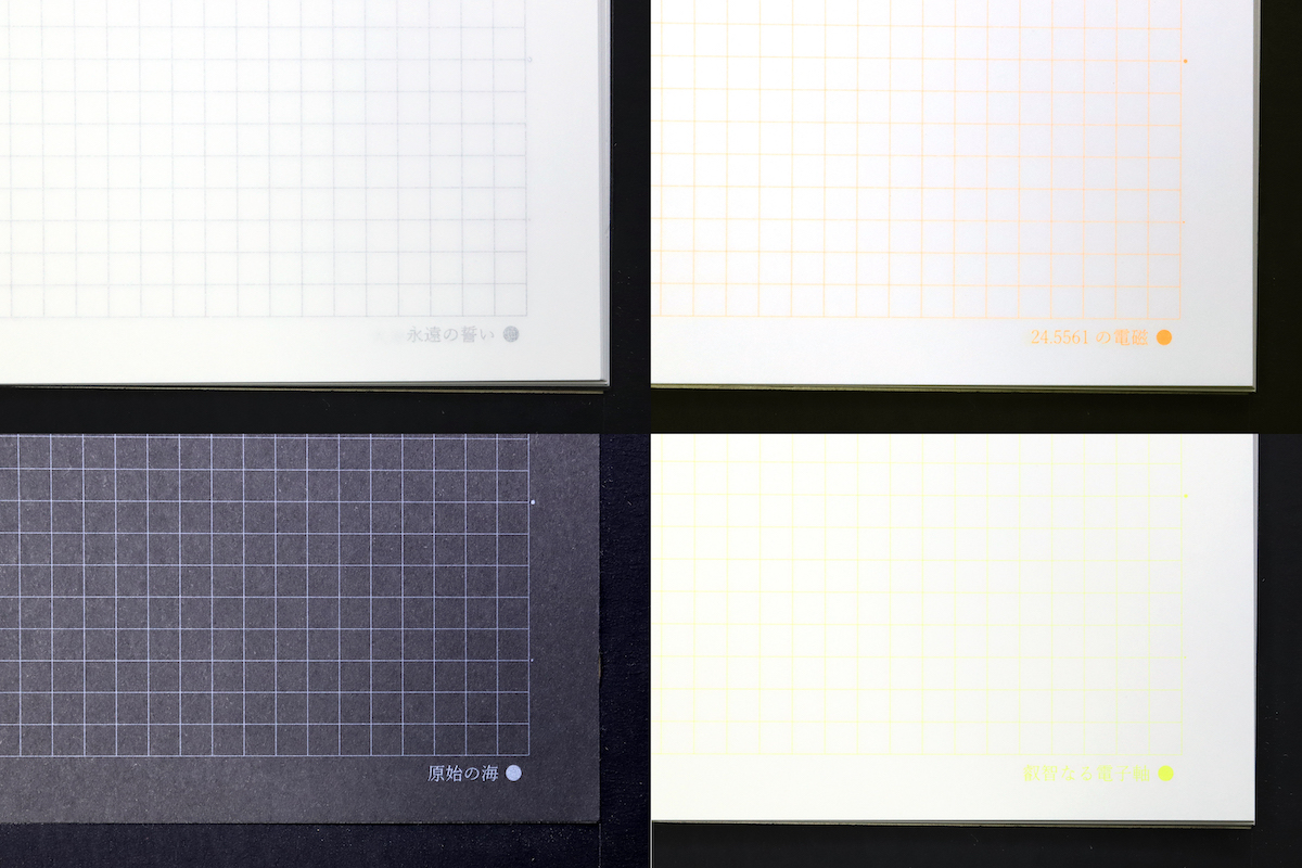 また、色によって「累日の睡蓮」や「傲慢なるマジェンタ」「純真無垢な好奇心」といったリリカルな色名が付けられているのもユニーク。ちなみに蛍光オレンジの色名は「24.5561の電磁」。24.5561Kはネオンの温度定点だな、というように、色名の元ネタをいちいち探っていくのも面白い。