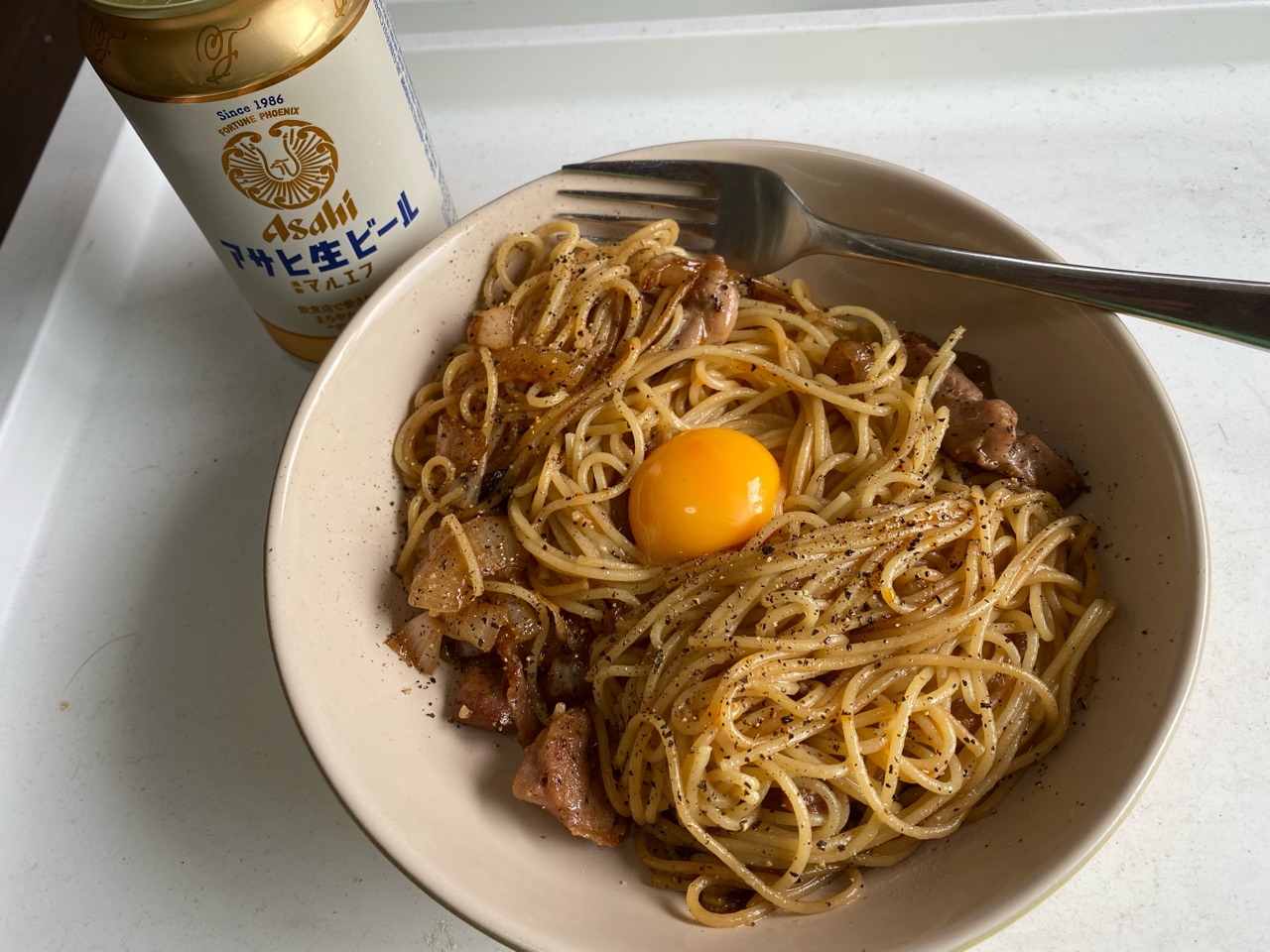 一番良く参考にするレシピ動画がリュウジさんのバズレシピ。なんと言っても飲みながら料理するのがいいよね。今回はそこから無限油パスタを作ってみた。 動画では長ねぎを使ってるが、玉ねぎで代用。ところで長ネギって結構お値段するのね。ネギは使い勝手から冷凍の青ネギをみじん切りしたやつ買っちゃうのよ。 そしてリュウジさんのレシピ使いだしてからよく使うのが黒胡椒。今回も大活躍。あ、それと日本酒もよく使うようになった。白だしもだ。 で、出来上がりがこちら。めーーーーちゃうまかった。これはまた作る!