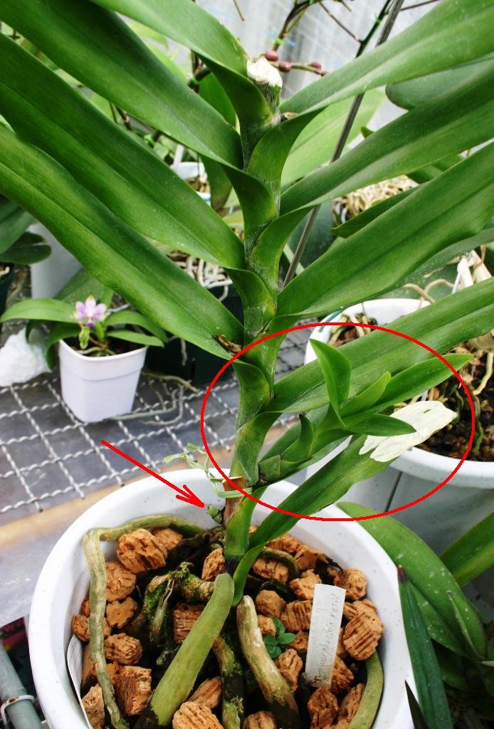 2012.01.28 Dimorphorchis rossii 約11ヶ月前の状況です。 花の終わった花茎付け根から病気が入り、株の上半分がが枯れてしまいました。 2012.12.18 この種はとても芽吹きがよく、ほとんどの節から新芽が伸びだしました。 3本残すのは多すぎる気がしましたが、結果的にはいずれも元気に良く育ちました。 花芽が出るには一年経過した節からしか花芽は出ませんから、花は2013年の7月になります。