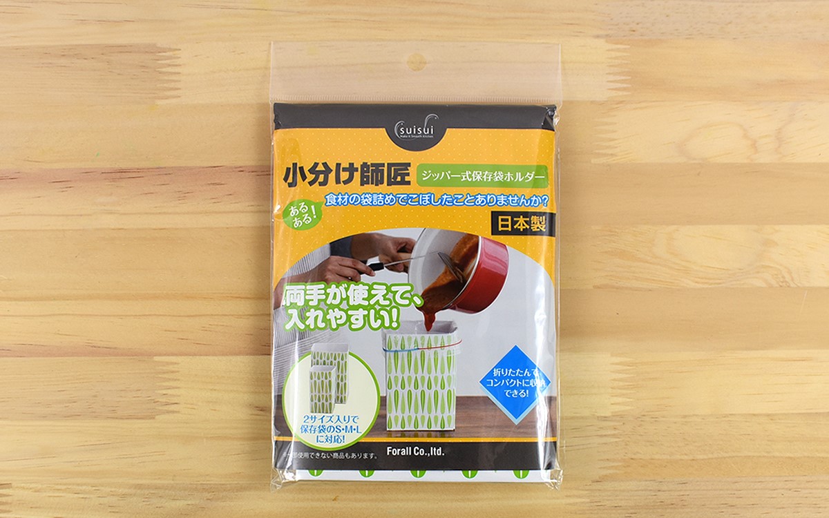 ●ジッパー式保存袋を自立させる専用ホルダー「小分け師匠」(フォーラル)