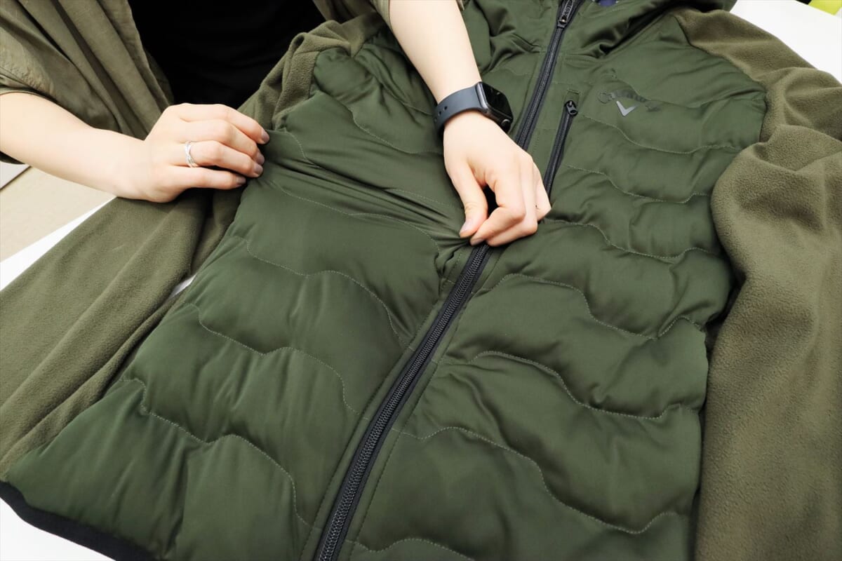 キャロウェイでは通常のラインとは別に、直営店・オンライン・百貨店向けのラグジュアリーブランド「レッドレーベル」を用意しています。同レーベルでもスターストレッチ素材を使用したブルゾンを同時発売します。全面的にスターストレッチ素材を使用し、より動きやすい作りになっています。ポケットのドローコードや肩にワンポイントで赤を使い、レッドレーベルの特別感を醸し出しています。ブラック、ホワイト、カーキの3色展開です。