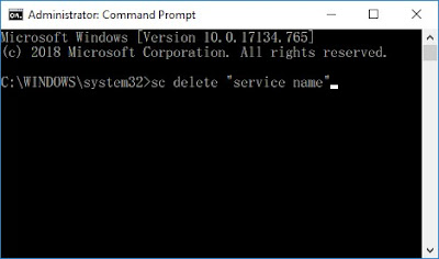 2. พิมพ์คำสั่ง sc delete “service name” จากนั้นกด Enter